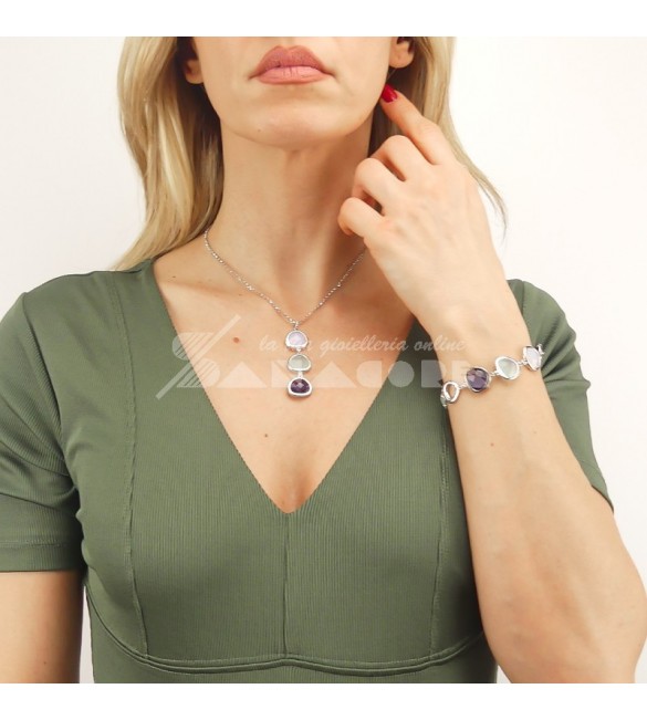 Bracciale Donna Gioielli Boccadamo Crisette in bronzo rodiato con cristalli ametista acqua milk XBR983
