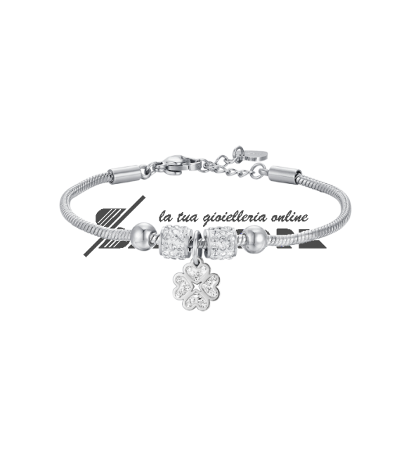 Bracciale Bambina Gioielli Luca Barra Junior in acciaio quadrifoglio e cristalli jb182