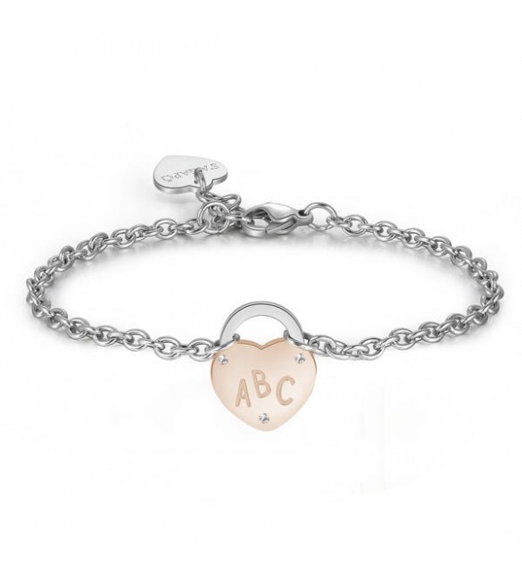 Bracciale Donna Gioielli Sagapò Lockme in acciaio e pvd oro rosa con cuore con scritta La mia maestra preferita e cristalli bian