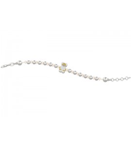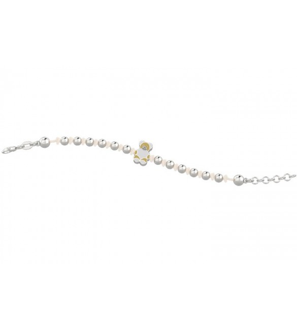 Bracciale Bambino Bambina Gioielli Nanan Bijou laccio bianco, sfere orso argento nan0072