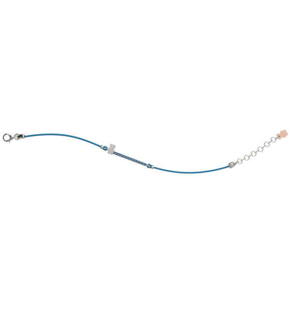 Bracciale Bambino Bambina Gioielli Nanan Bijou laccio azzurro zirconi Orsetto argento nan0185