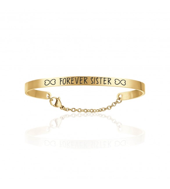 Bracciale Donna Gioielli Luca Barra rigido in acciaio pvd oro con incisione Forever Sister bk2108