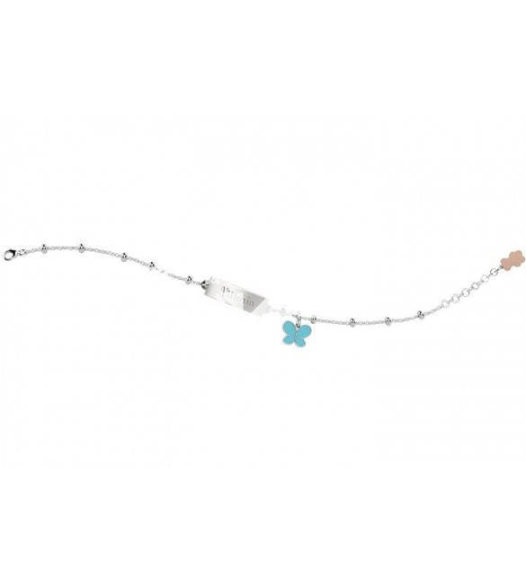 Bracciale Bambino Bambina Gioielli Nanan Bijou argento Targhetta Farfalla smalto turchese nan0225