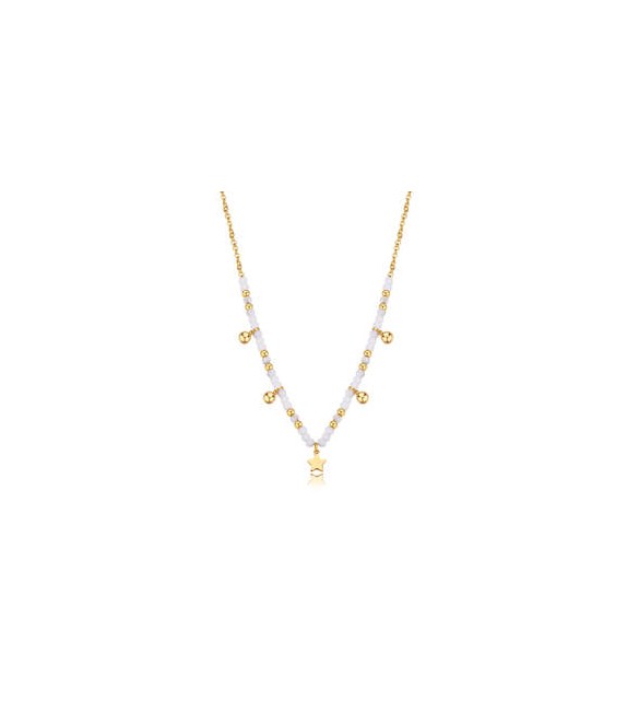 Collana donna gioielli Sagapò Glint in acciaio dorato, vetro bianco e stella sgi04