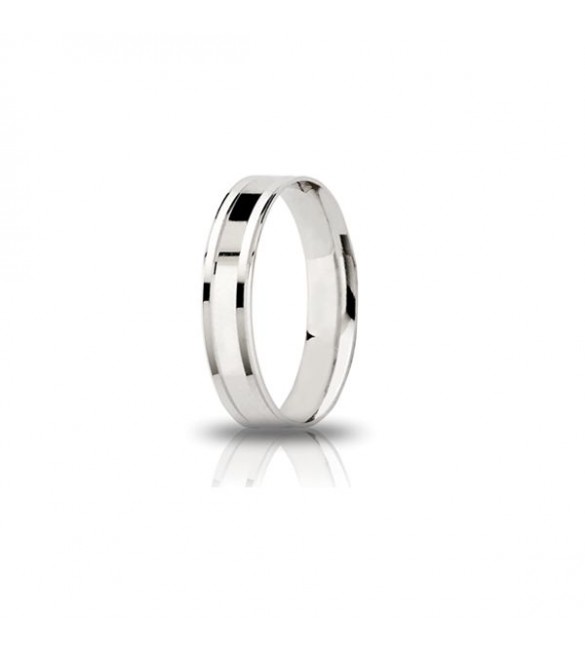Fedina di fidanzamento Unoaerre Girasole in argento 925 bianco in finitura lucida liscia con bordi scanalati. Mm 4,00