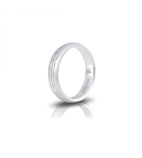 Fedina di fidanzamento Unoaerre Ibisco in argento 925 bianco in finitura lucida diamantata centrale, satinata lateralmente. Mm 3