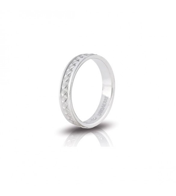 Fedina di fidanzamento Unoaerre Petunia in argento 925 bianco in finitura diamantata fiocco di neve. Mm 3,40