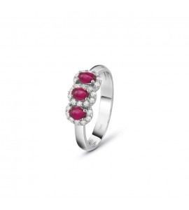 Anello Donna Gioielli Bliss Dream in Oro Bianco Diamanti e Tre Rubini ct 0,55 20095811