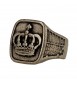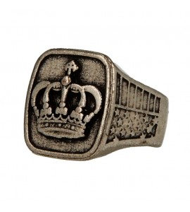Anello in ottone finitura argento fascia con cornice quadrata con raffigurata una corona e delle stelle.