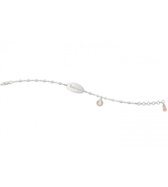 Bracciale Bambino Bambina Gioielli Nanan Bijou Targhetta Orsetto cipria argento nan0064