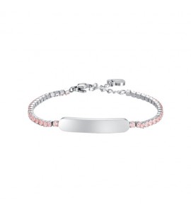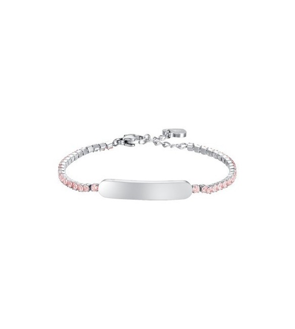 Bracciale in acciaio tennis con zirconi rosa e piastra da poter incidere.