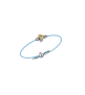 Bracciale laccio azzurro con iniziale in argento 925 smaltata da entrambi i lati bianco e beige.
