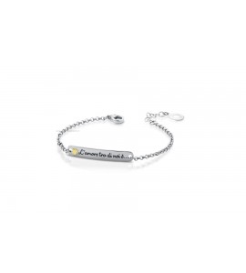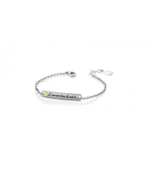 Bracciale in argento 925/1000 con angelo in oro giallo e incisione "L'amore tra di noi...".