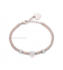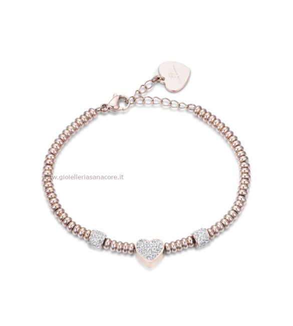 Bracciale Donna Gioielli Luca Barra in acciaio pvd oro rosa Cuore cristalli bianchi bk1979