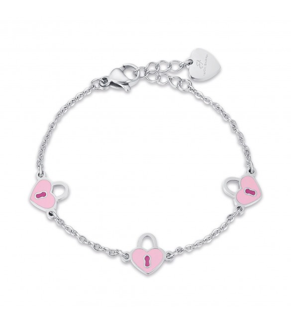 Bracciale Bambina Gioielli Luca Barra Junior in acciaio 316L con Cuori Lucchetto jb107