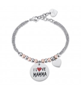 Bracciale Donna Gioielli Luca Barra con piastra incisa in acciaio IP rose I Love Mamma bk2046