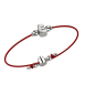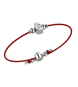 Bracciale laccio rosso con iniziale in argento 925 smaltata da entrambi i lati bianco e beige.