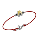Bracciale laccio rosso con iniziale in argento 925 smaltata da entrambi i lati bianco e beige.