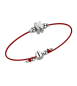 Bracciale laccio rosso con iniziale in argento 925 smaltata da entrambi i lati bianco e beige.