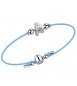 Bracciale laccio azzurro con iniziale in argento 925 smaltata da entrambi i lati bianco e beige.