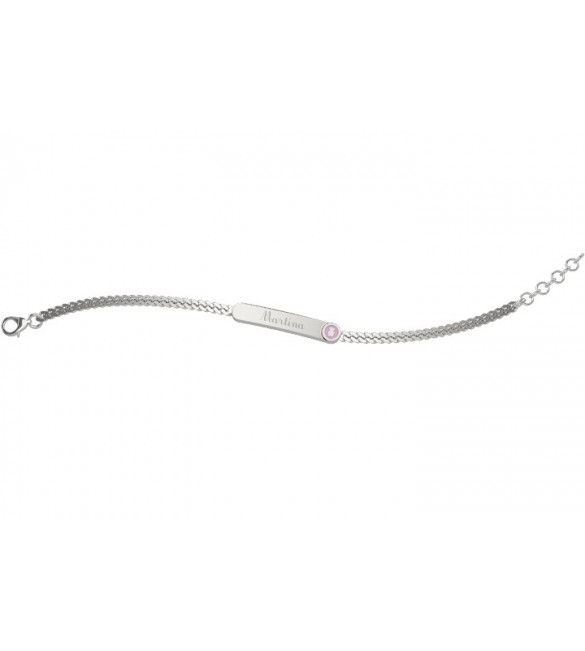 Il raffinato bracciale in puro argento della linea Nanàn Bijou è rifinito nei dettagli, con una targhetta in cui inserire il nome della tua bimba.