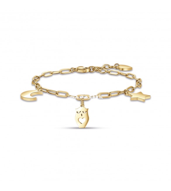Bracciale Donna Gioielli Luca Barra in acciaio pvd oro con Luna Gufo Stella bk2154