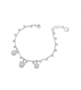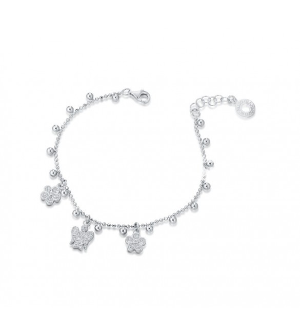 Bracciale in argento 925/1000 con angelo custode, fiori e zirconi.