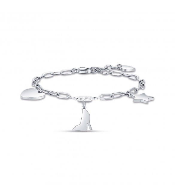 Bracciale Donna Gioielli Luca Barra in acciaio con Cuore Scarpetta Stella bk2148