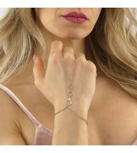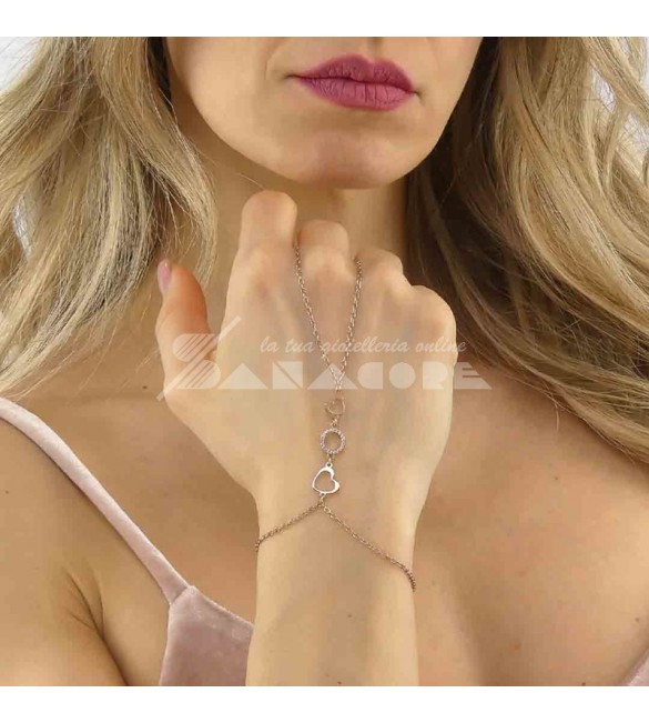 Bracciale baciamano con catena placcata oro rosa Cuori e cerchietto di zirconi.