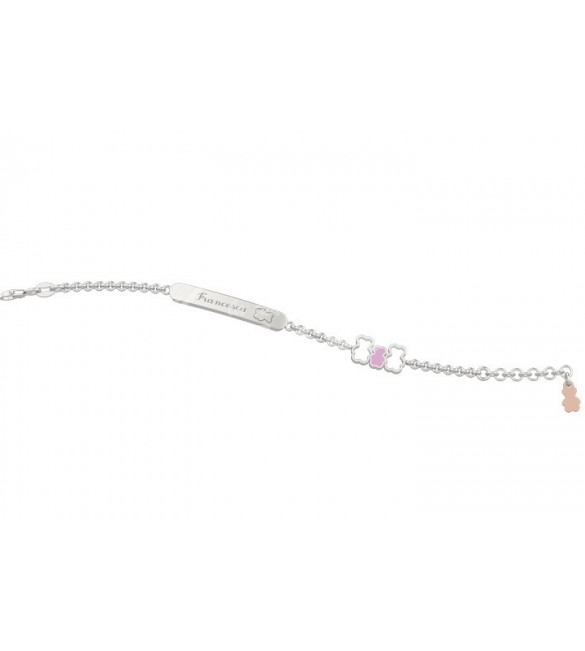 Bracciale catenina con piastrina in argento 925 e famiglia Tato smaltato rosa. (possibilità di incisione)