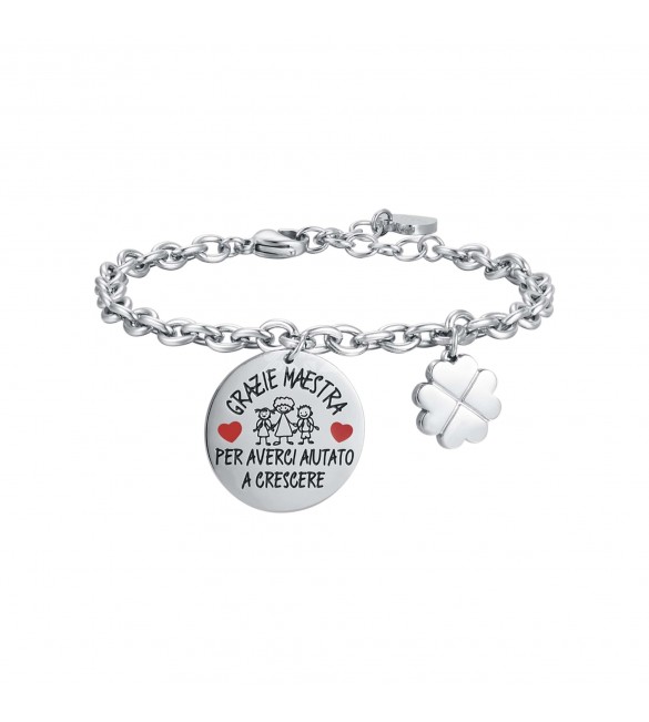 Bracciale Donna Gioielli Luca Barra con piastra incisa in acciaio Grazie Maestra bk2266