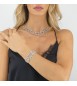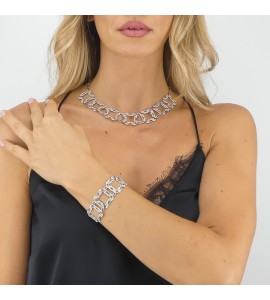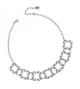 Collana semirigida rodiata composta da moduli quadrati decorati da inserti dall'effetto diamantato e cristalli crystal.