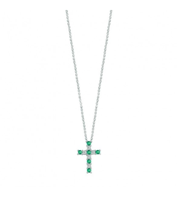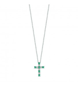 Collana Donna Croce Gioielli Bliss Jasmine in Oro Bianco Smeraldi Diamanti ct 0,03 20101473