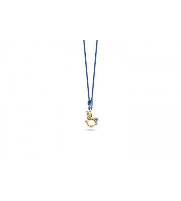 Collana laccio in cotone cerato blu con cavallo a dondolo in argento dorato 925 smalto e zirconi.