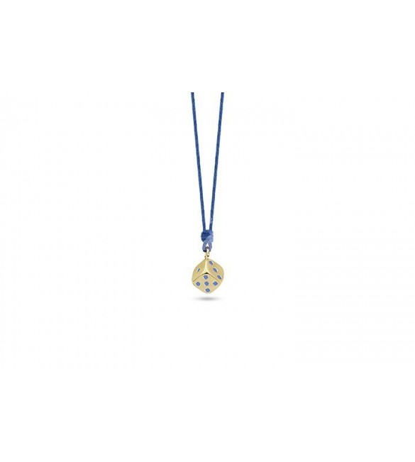 Collana laccio in cotone cerato blu con dado in argento dorato 925 e smalto.