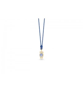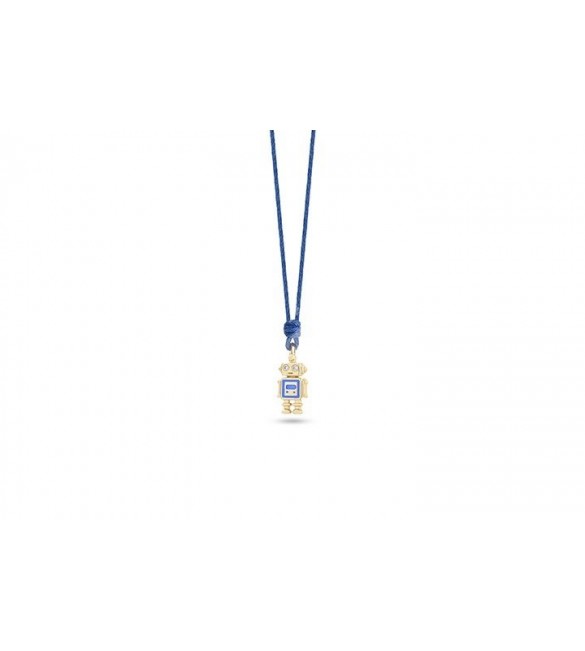 Collana laccio in cotone cerato blu con robottino in argento dorato 925 smalto e zirconi.