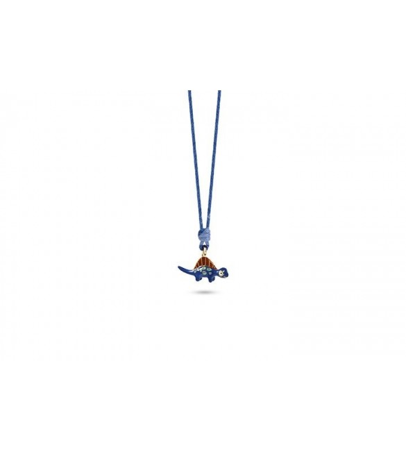 Collana Bambino Bambina Gioielli Nanan Bijou laccio blu Spinosauro dorato argento nan0448