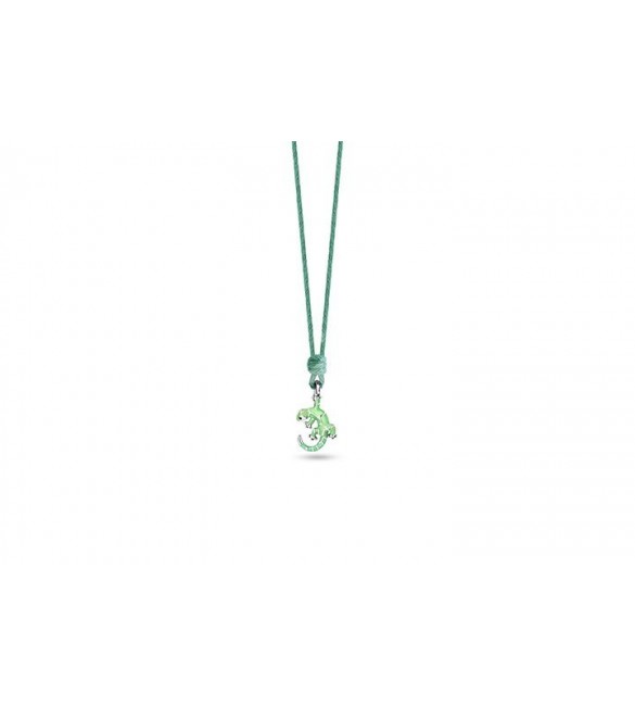Collana laccio in cotone cerato verde con geco in argento 925 smalto.