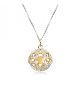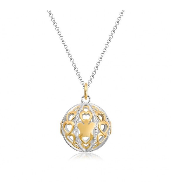 Collana con pendente Chiama Angeli in argento 925/1000 con cuori, angelo in argento giallo e zirconi bianchi.
