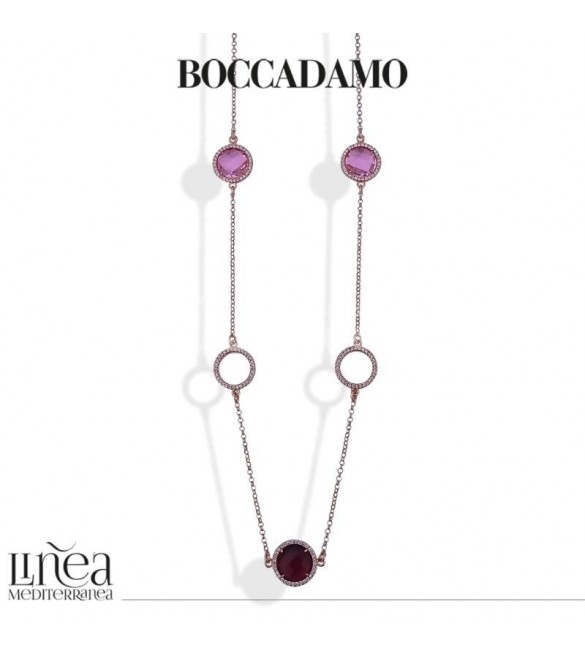 Collana donna gioielli Boccadamo Sharada lunga in bronzo placcato oro rosa con cristalli rosa e rosso tormalina e zirconi XGR654RS