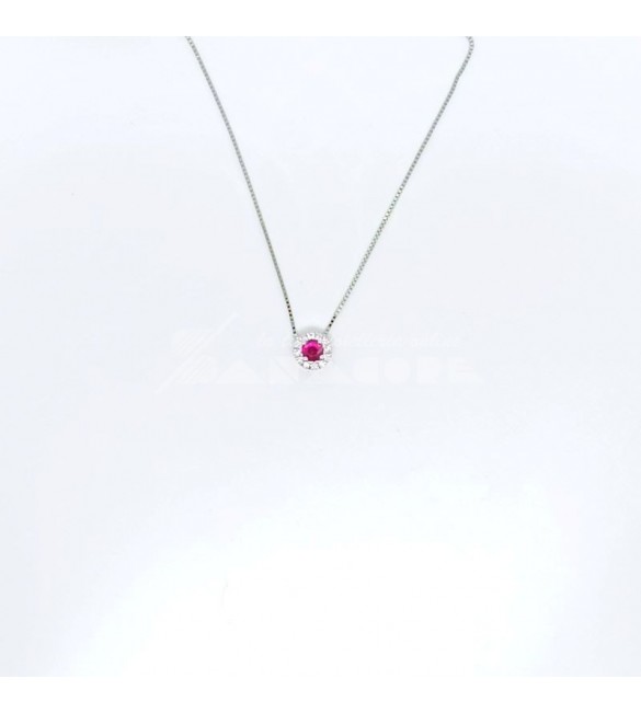 Collana Donna Gioielli Davite & Delucchi in Oro Bianco Diamanti e Rubino ct 0,14 cln010581 rbs