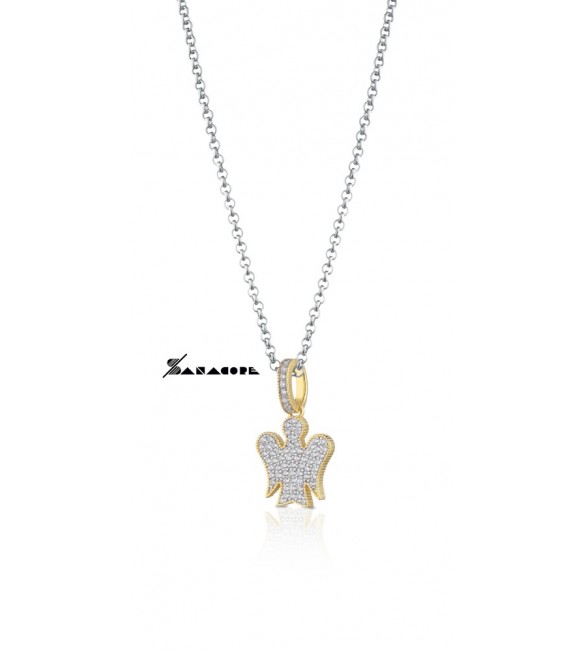 Collana in argento 925/1000 con angelo custode in argento bianco e giallo con zirconi bianchi.