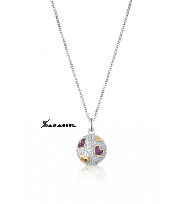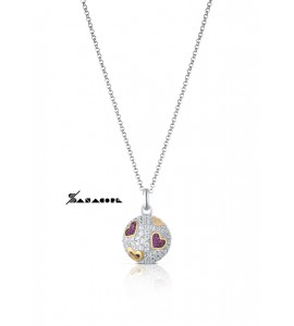 Collana con pendente Chiama Angeli in argento 925/1000 con zirconi bianchi e rossi.