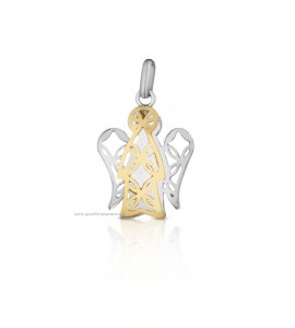Pendente in oro giallo e bianco 750/1000 con angelo custode "mini".