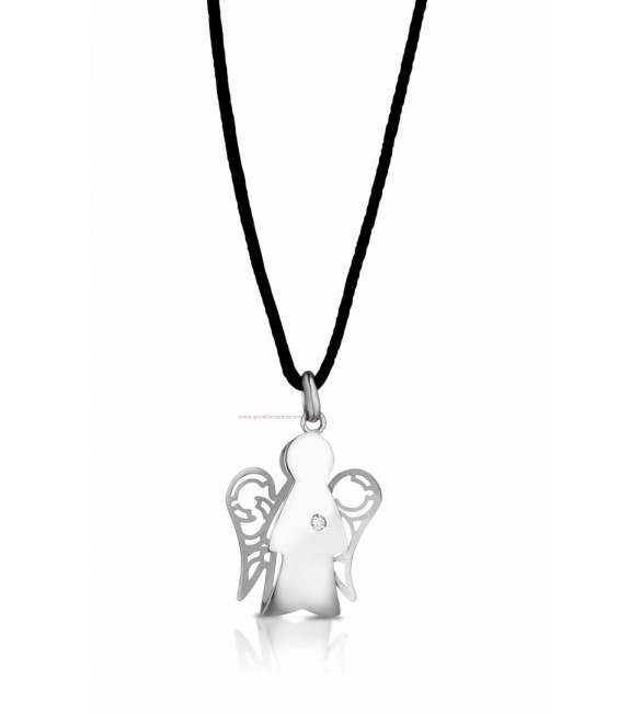 Pendente in oro bianco 750/1000 con angelo custode "mini" e diamante ct 0,01.