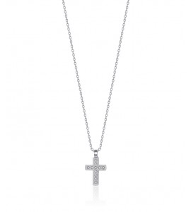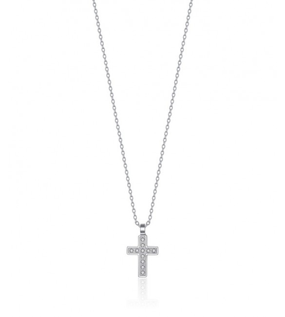 Collana uomo gioielli Luca Barra in acciaio con croce e cristalli ca428