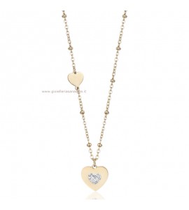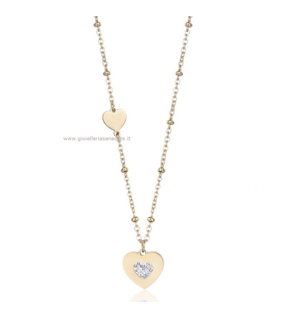 Collana donna gioielli Luca Barra in acciaio pvd oro Cuore cristalli bianchi ck1501