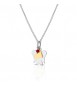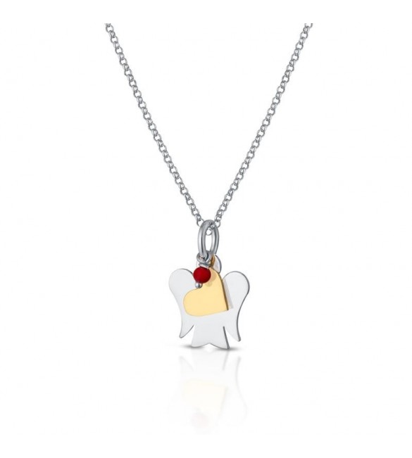 Collana in argento 925/1000 con pendenti angelo custode, cuore in argento giallo e corallo rosso charm.