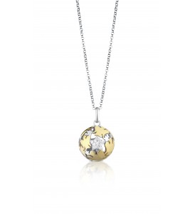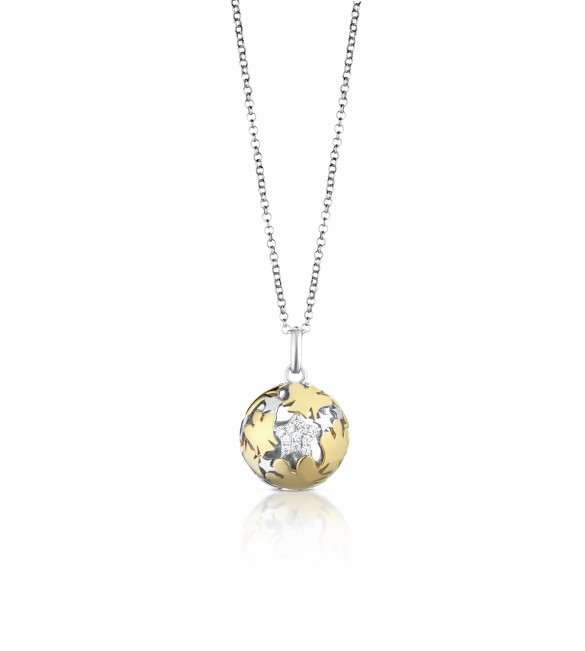 Collana con pendente Chiama Angeli in argento 925/1000 bianco e giallo, e stella con zirconi bianchi.