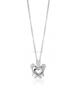 Collana con pendente Angelo in argento 925/1000 con cuore e zirconi bianchi.